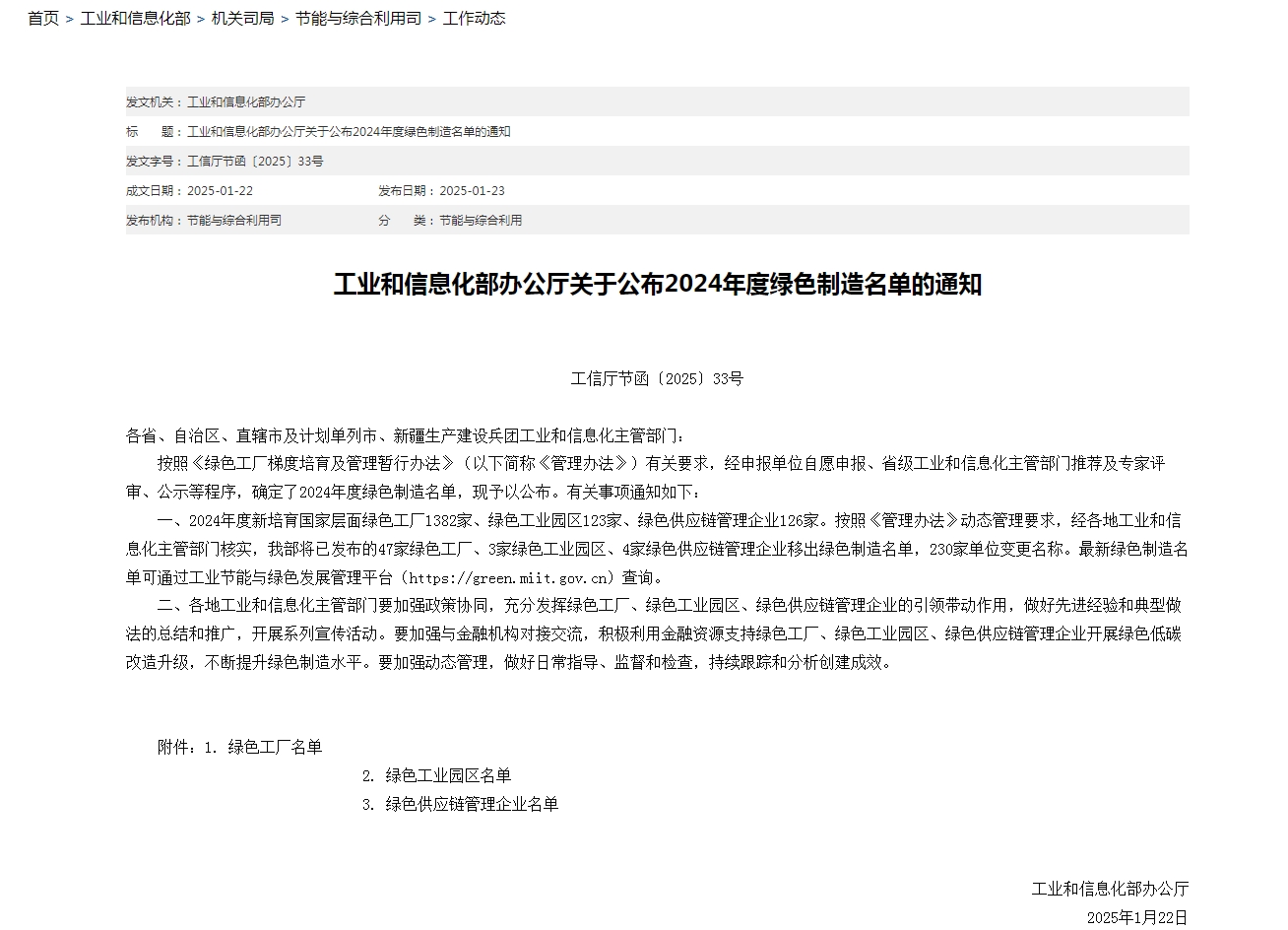 公司榮獲國家級“綠色工廠” 榮譽稱號