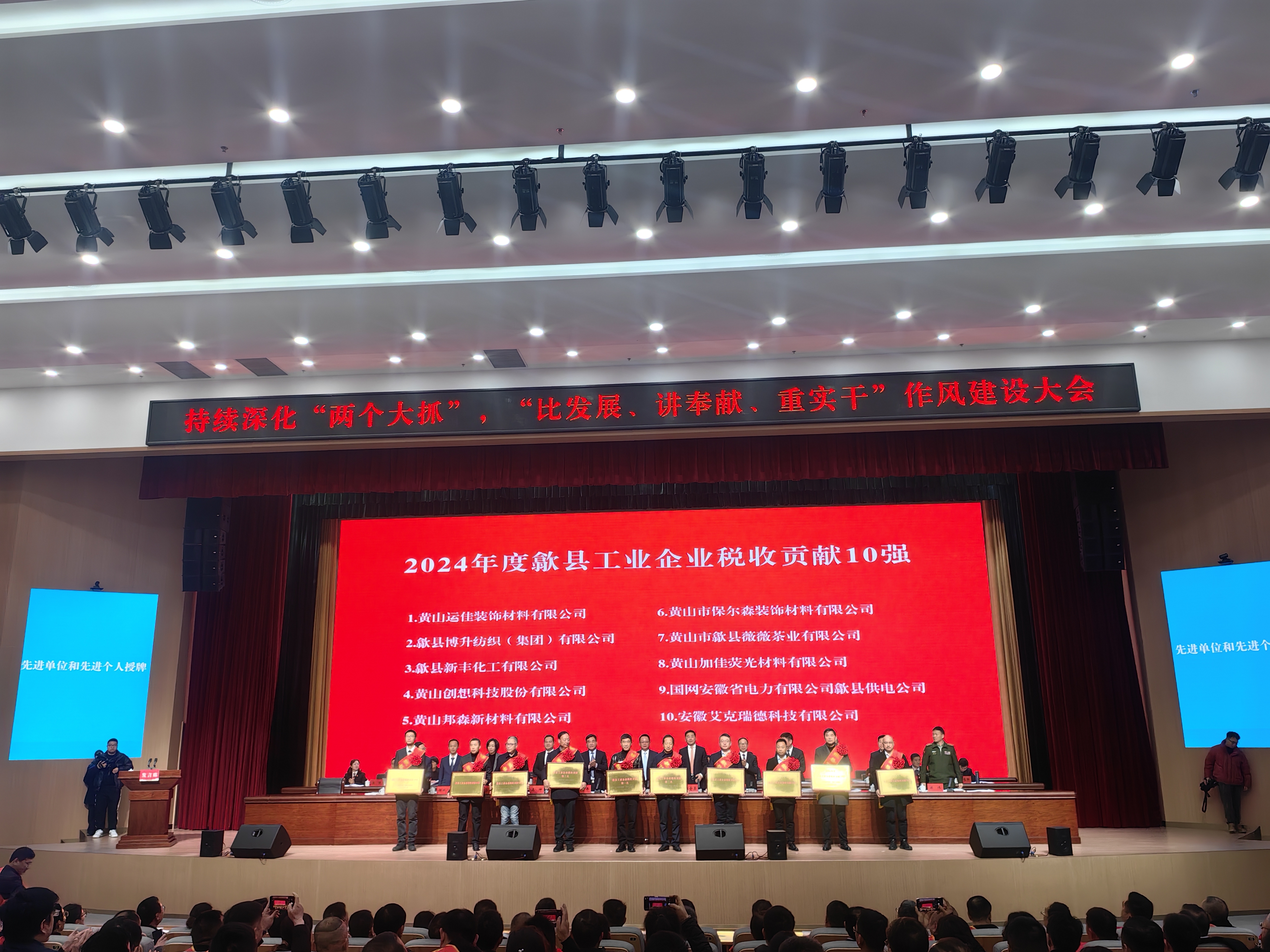 公司榮獲“歙縣工業企業稅收貢獻10強”榮譽稱號